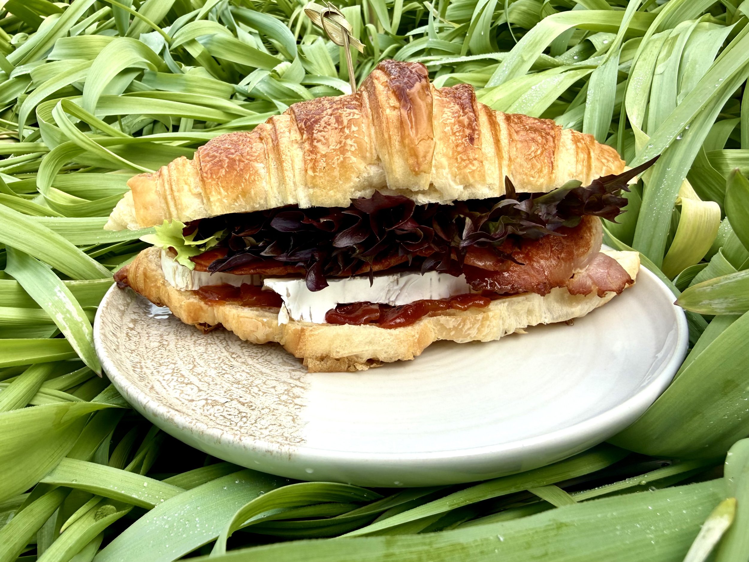 Savoury croissant - Bacon, brie, tangy tomato chutney & salad leaves