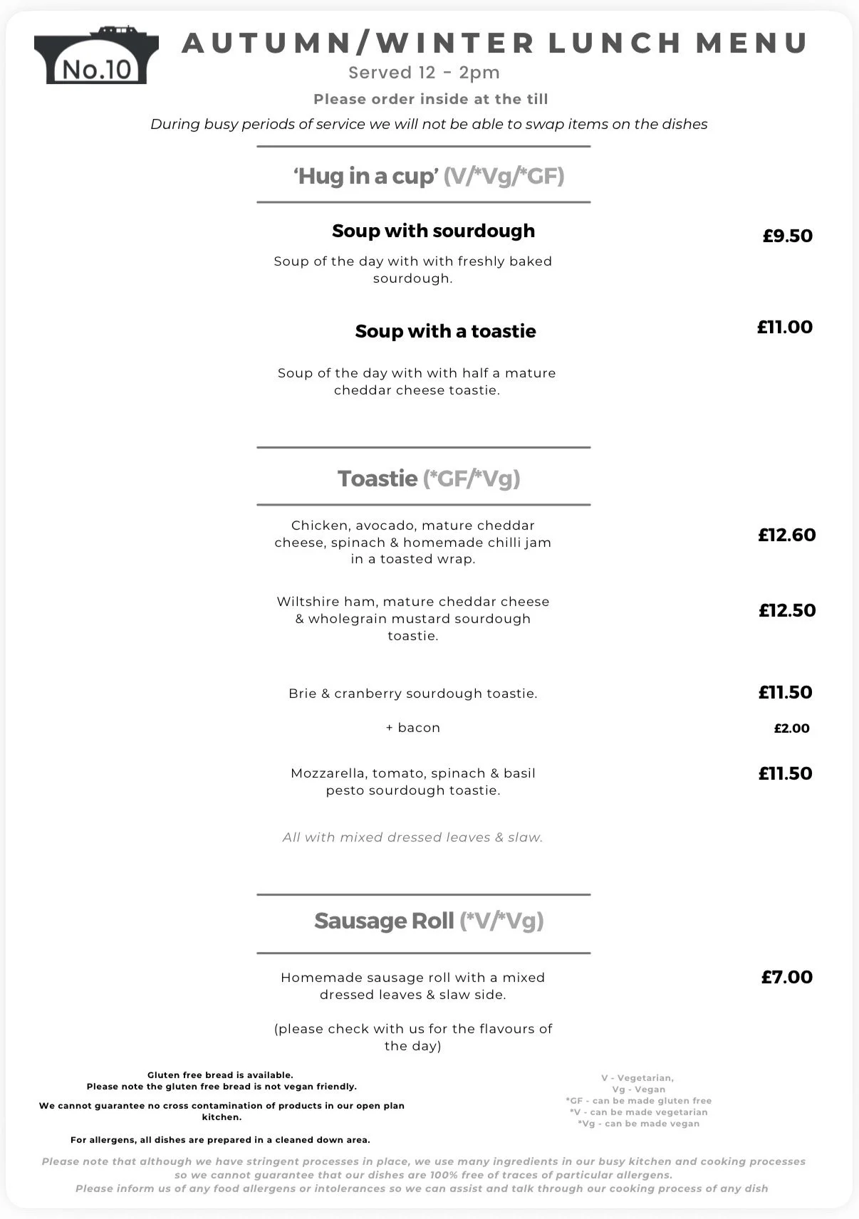 We offer meat, vegetarian, gluten free & vegan breakfast & lunch options; traditional, dairy free, gluten free, vegan & soya free cake options.